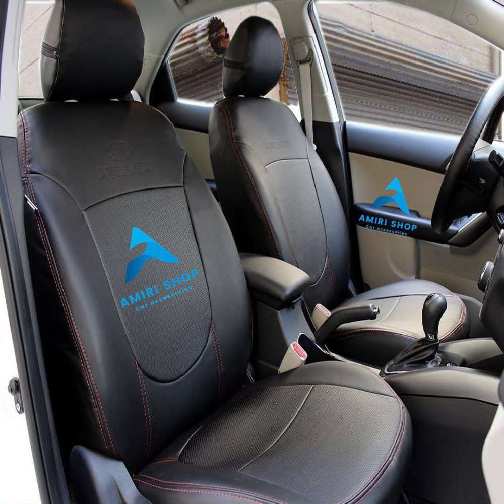 روکش صندلی سراتو سایپا تمام چرم رنگ مشکی دوخت قرمز
