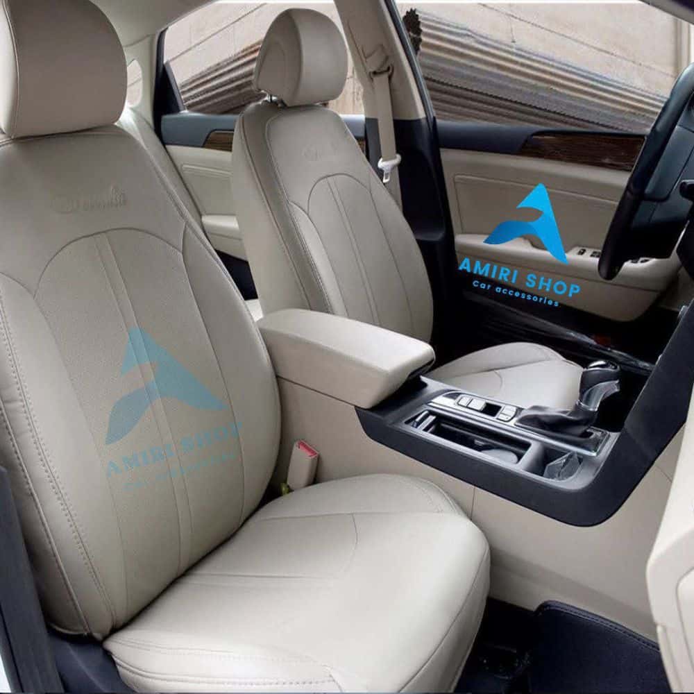 روکش صندلی سوناتا ال اف LF تمام چرم رنگ کرم استخوانی