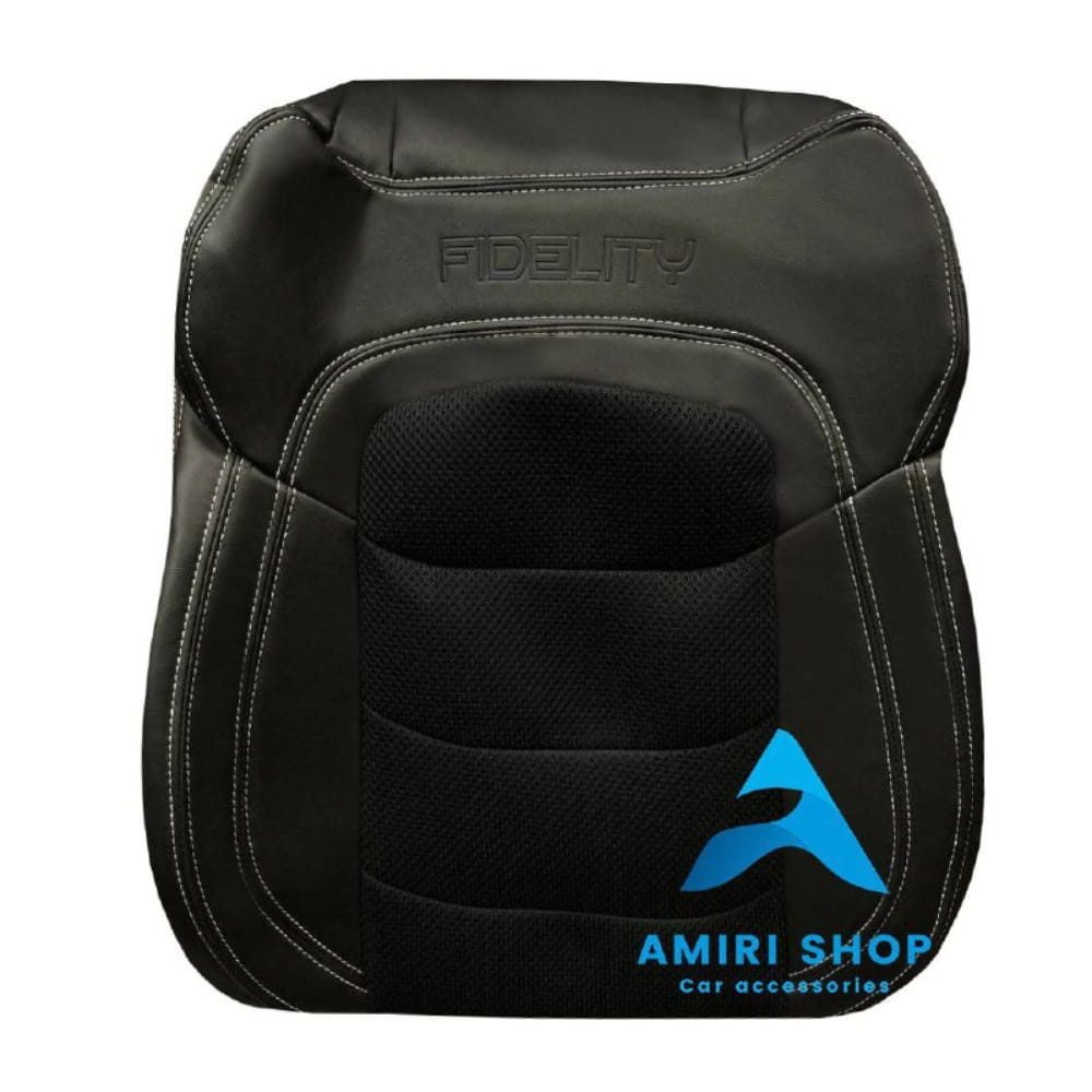 روکش صندلی فیدلیتی الیت پنج نفره چرم وسط پارچه رنگ مشکی دوخت طوسی