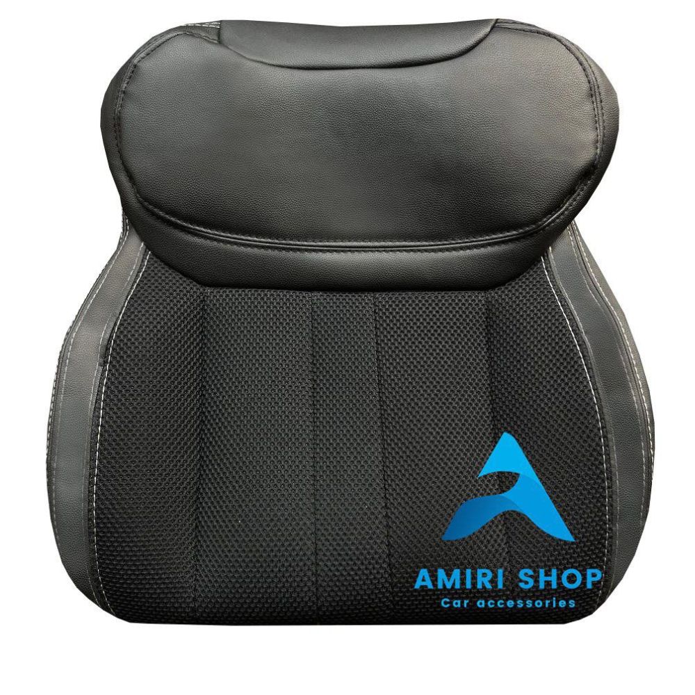 روکش صندلی لوکانو L7 چرم وسط پارچه رنگ مشکی دوخت طوسی